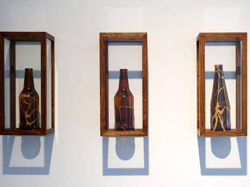 Darüber hinaus kann Kintsugi als erzählerisches Medium dienen und das Objekt mit dem ästhetischen Konzept von wabi-sabi, der Schönheit des Imperfekten, verbinden. Dies zeigt sich in der zeitgenössischen Kunst auf vielfältige Weise.